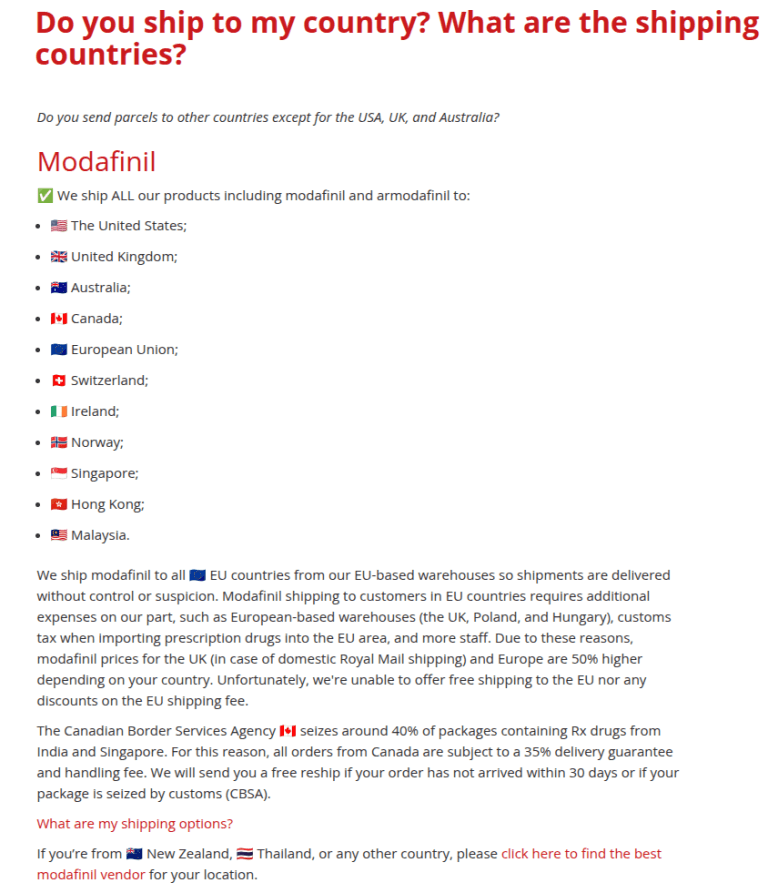 🚚 3. ModafinilXL Shipping Times and Countries