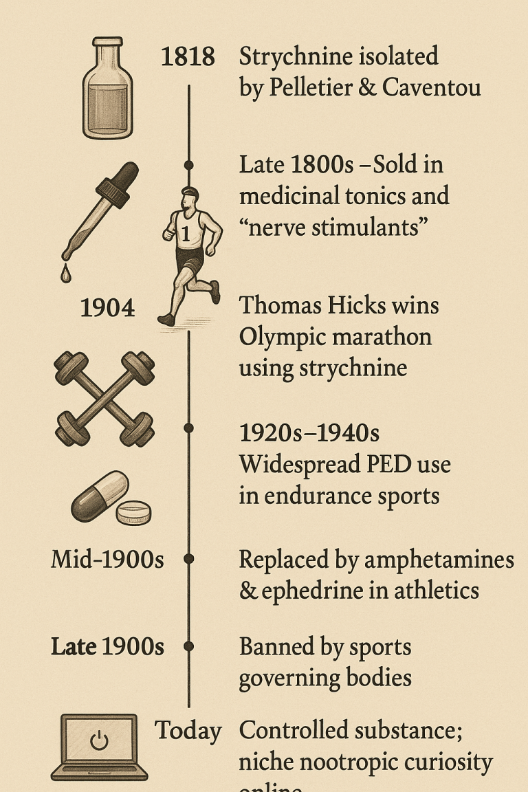From the Olympic podium to the poison control center, strychnine’s legacy is both fascinating and cautionary. While the modern nootropics and sports worlds are full of exotic compounds, few can match the sheer audacity — and danger — of this once-celebrated, now-feared stimulant.